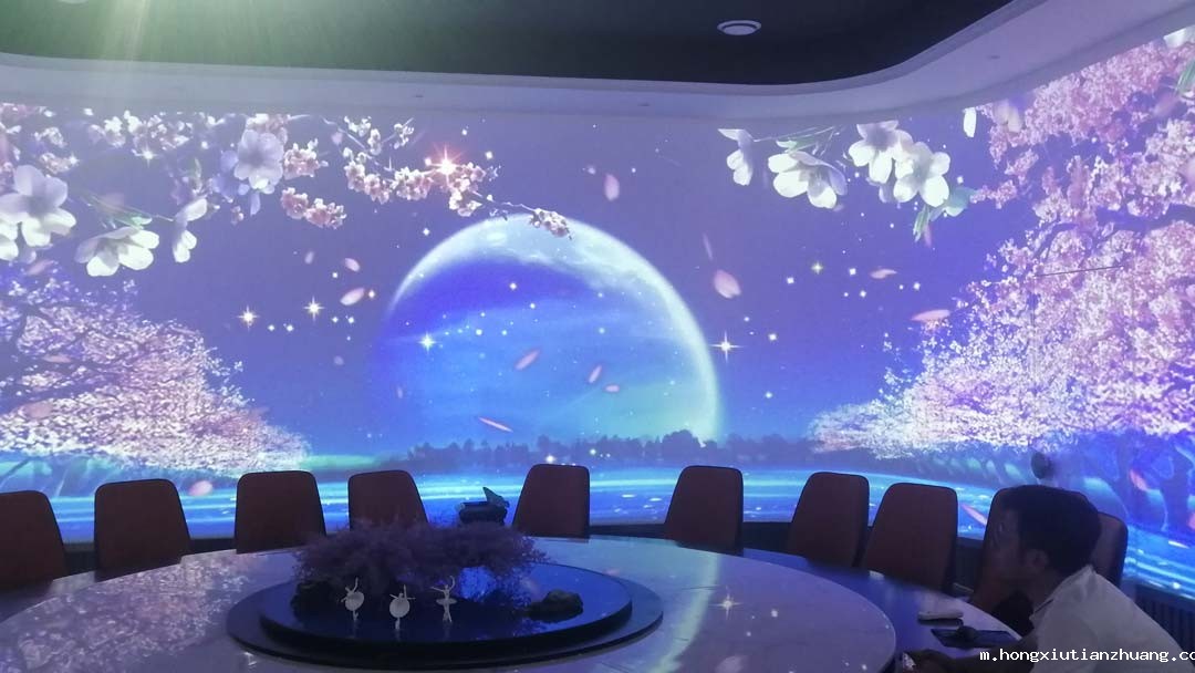 花好月圆的包厢,使用了8台投影机营造沉浸式体验的光影餐厅。每一个厅,每一个房间都有不同的主题。